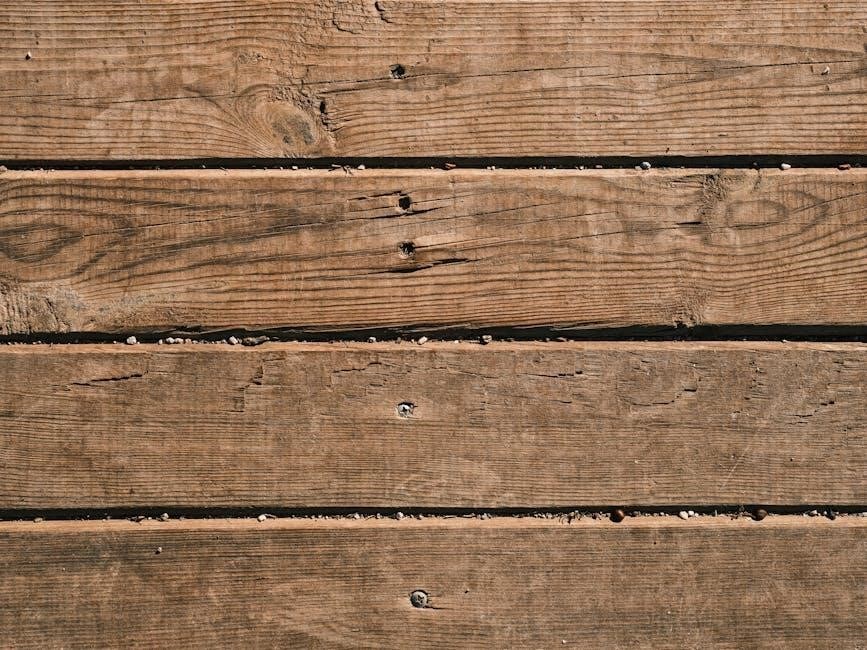 Proper decking installation requires correct spacing for expansion and contraction. Follow manufacturer guidelines, typically 1/8″ to 1/4″ gaps; Use appropriate fasteners – screws are preferred over nails – ensuring they are corrosion-resistant. Predrilling prevents splitting, and countersinking creates a smooth surface. Securely fasten each board to every joist for stability.